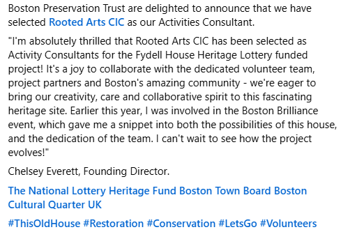 Chairman of the Trust Martin Fairman said “We are all very excited to see this project start after 5 years preparation which has involved many experts as well as our membership and users of Fydell House. The National Lottery Heritage Fund have supported us all the way and we extend our thanks to the many people who buy National Lottery tickets”